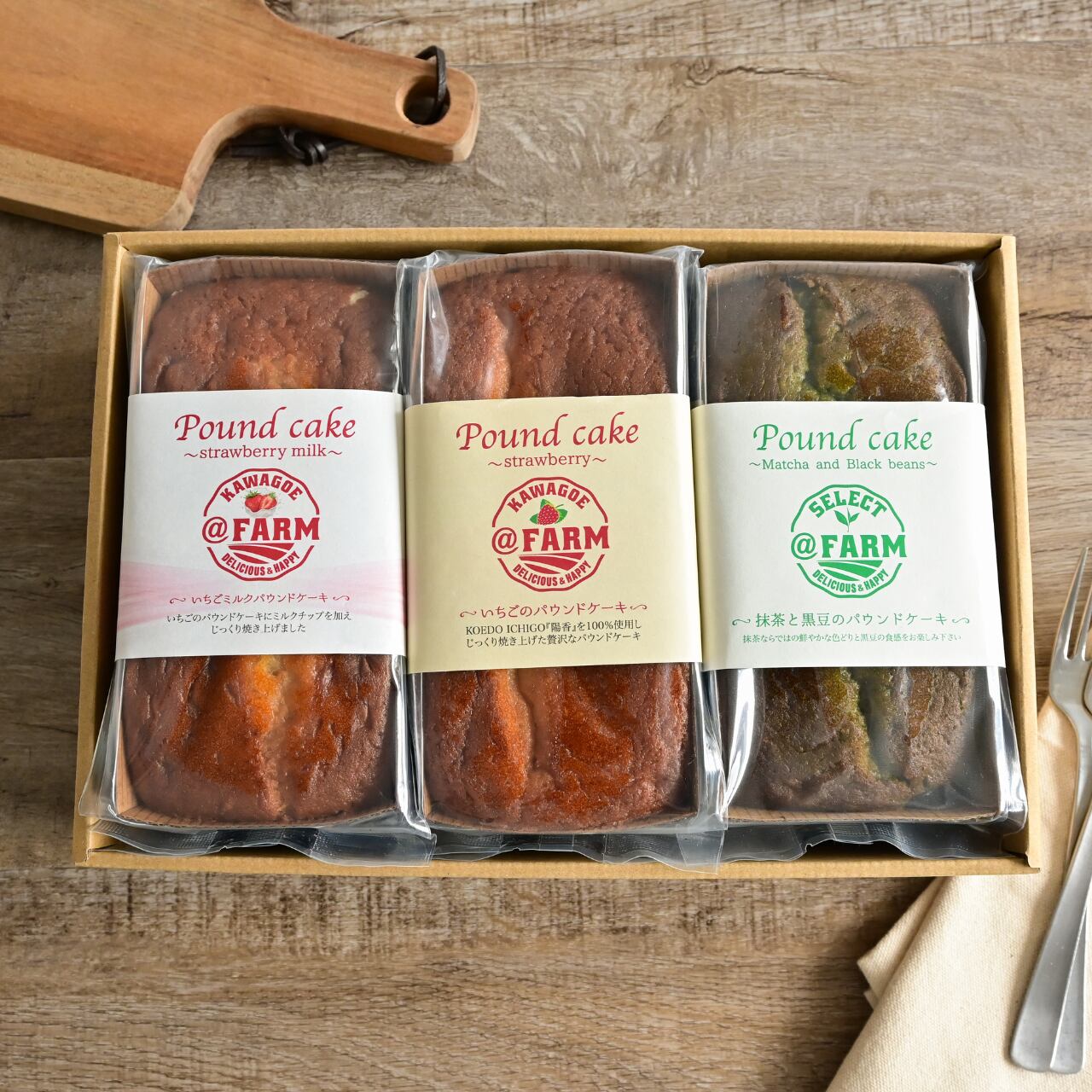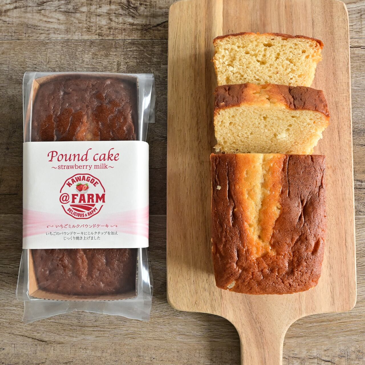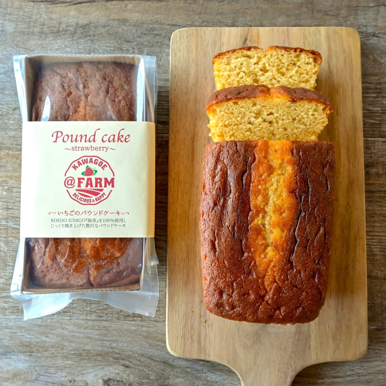 @FARMが川越市で育てたいちご「KOEDO ICHIGO 陽香-haruka-」をたっぷりと使用し、じっくり焼き上げた贅沢なパウンドケーキです。芳醇な香り、濃厚な甘さをそのまま活かしています。